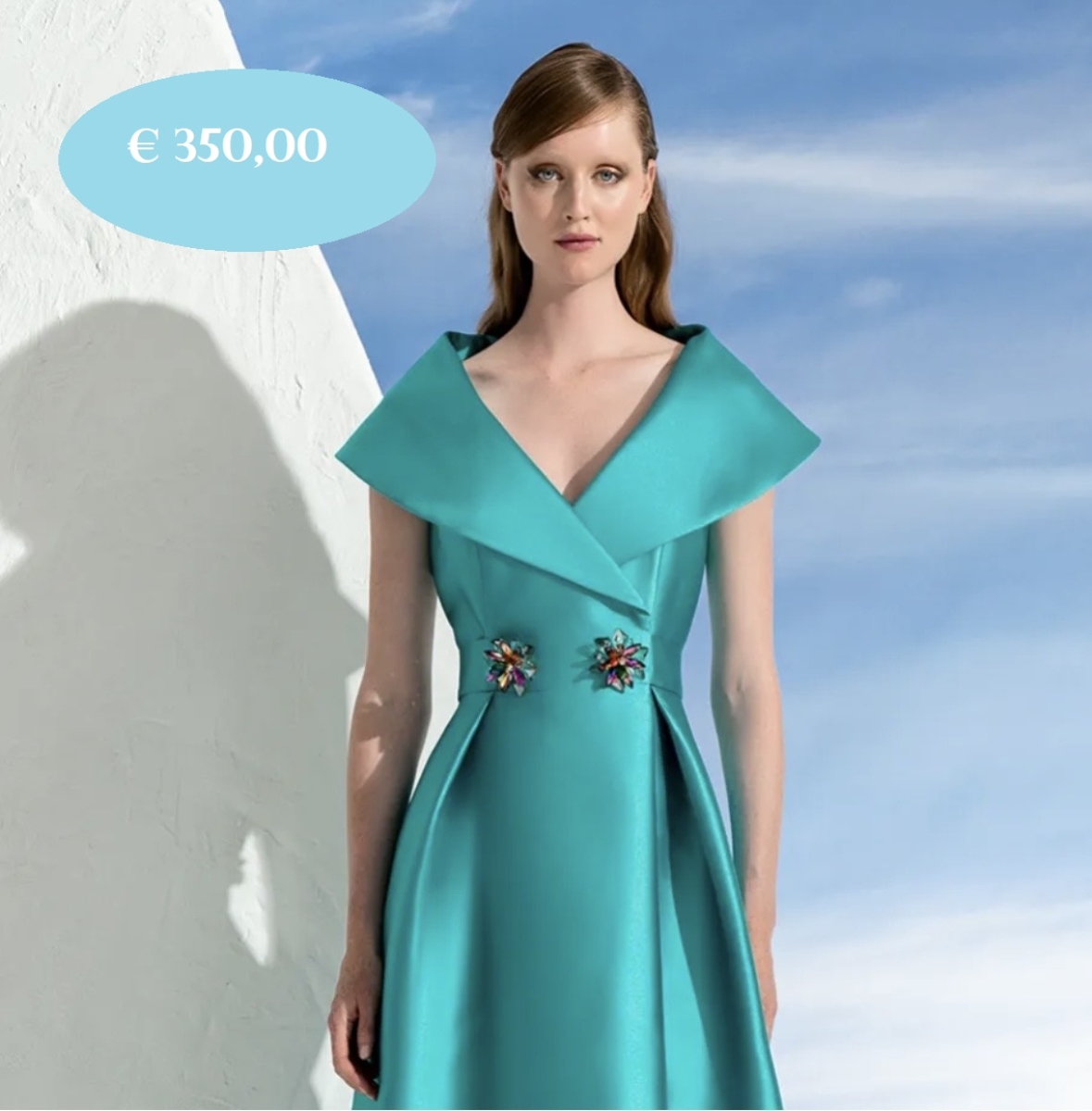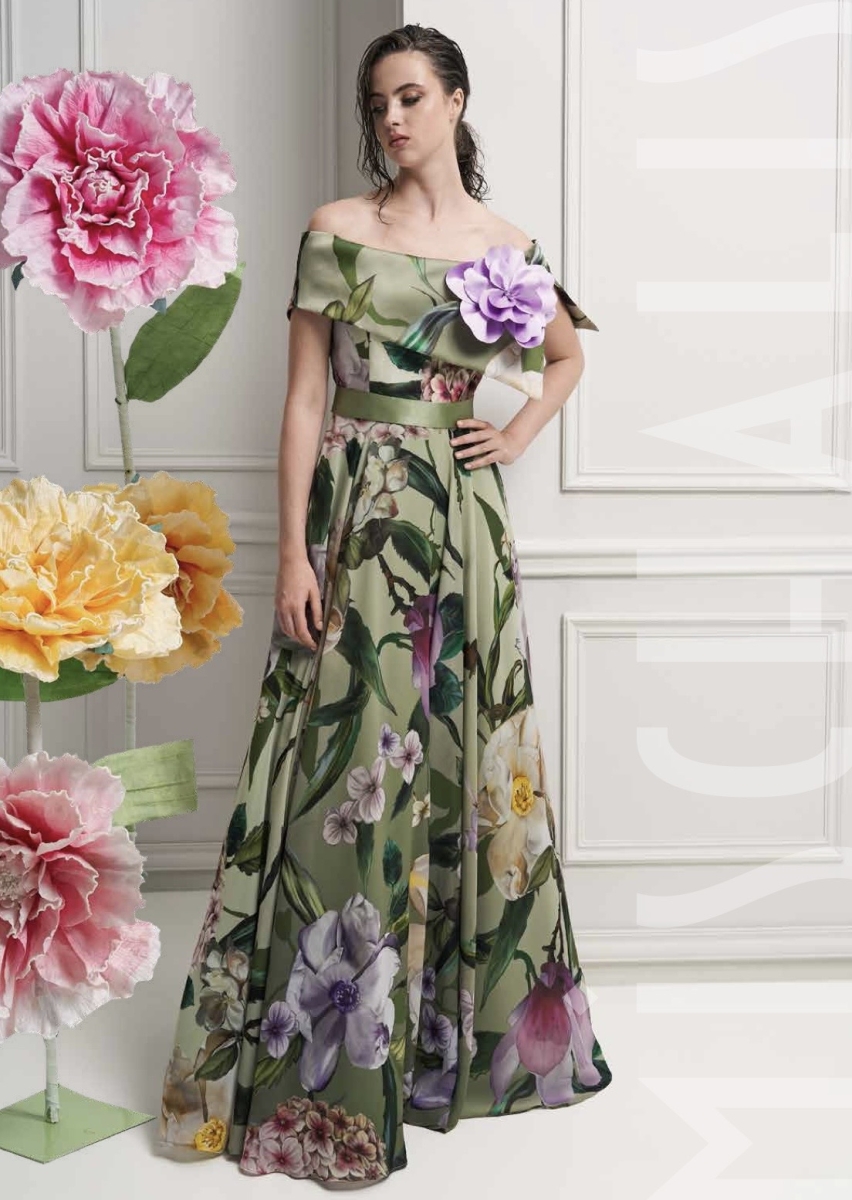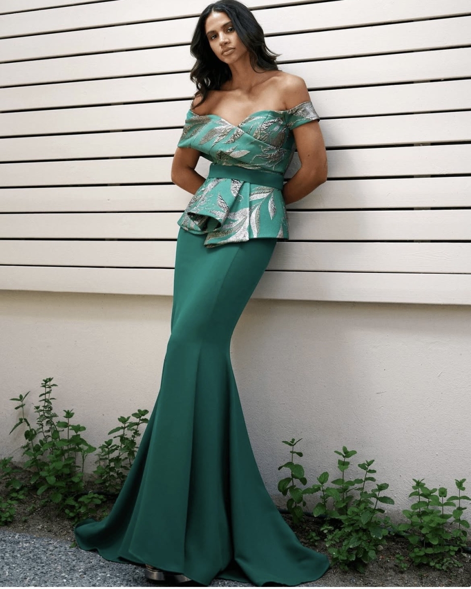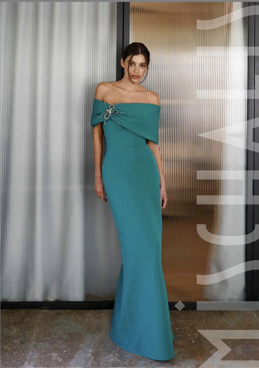 Abito con corpetto ricamato disponibile in verde smeraldo