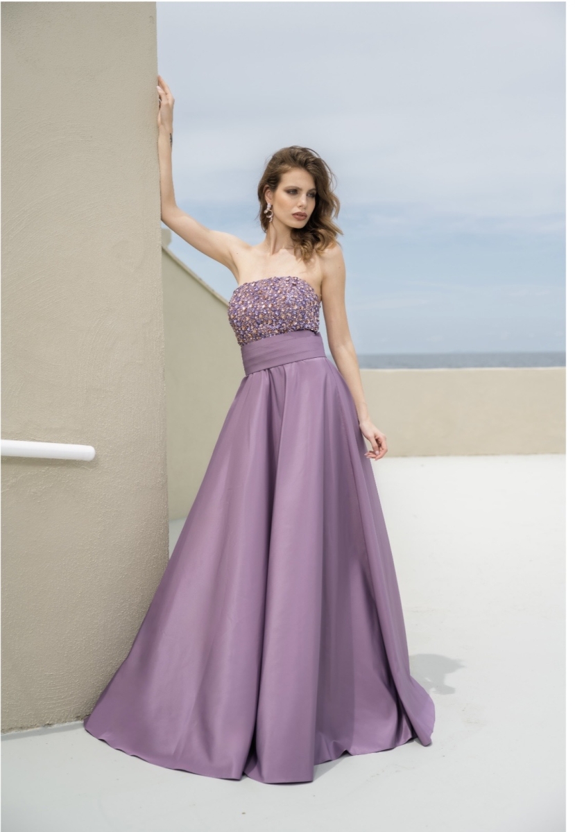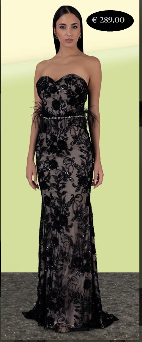 Abito con corpino e gonna ricamata