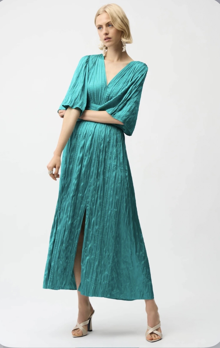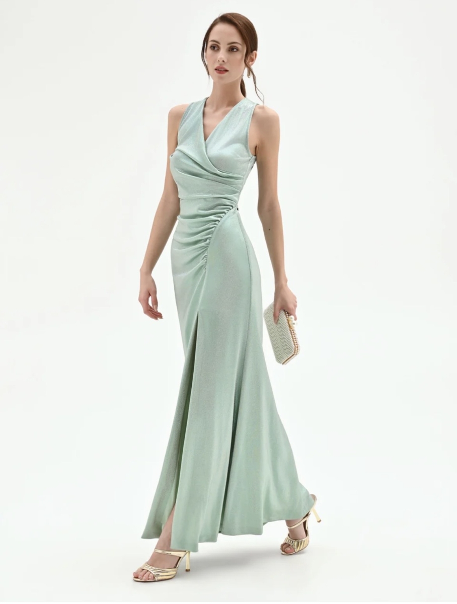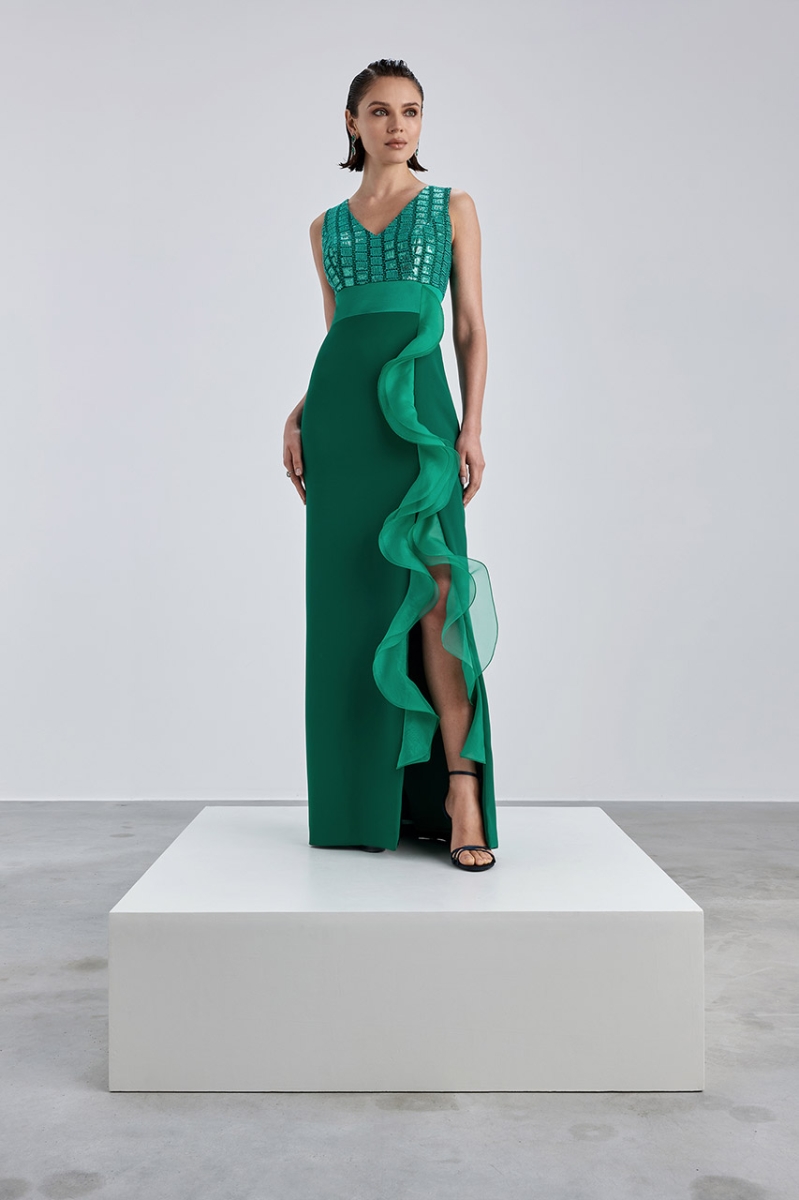 Abito in verde smeraldo con rouches laterale